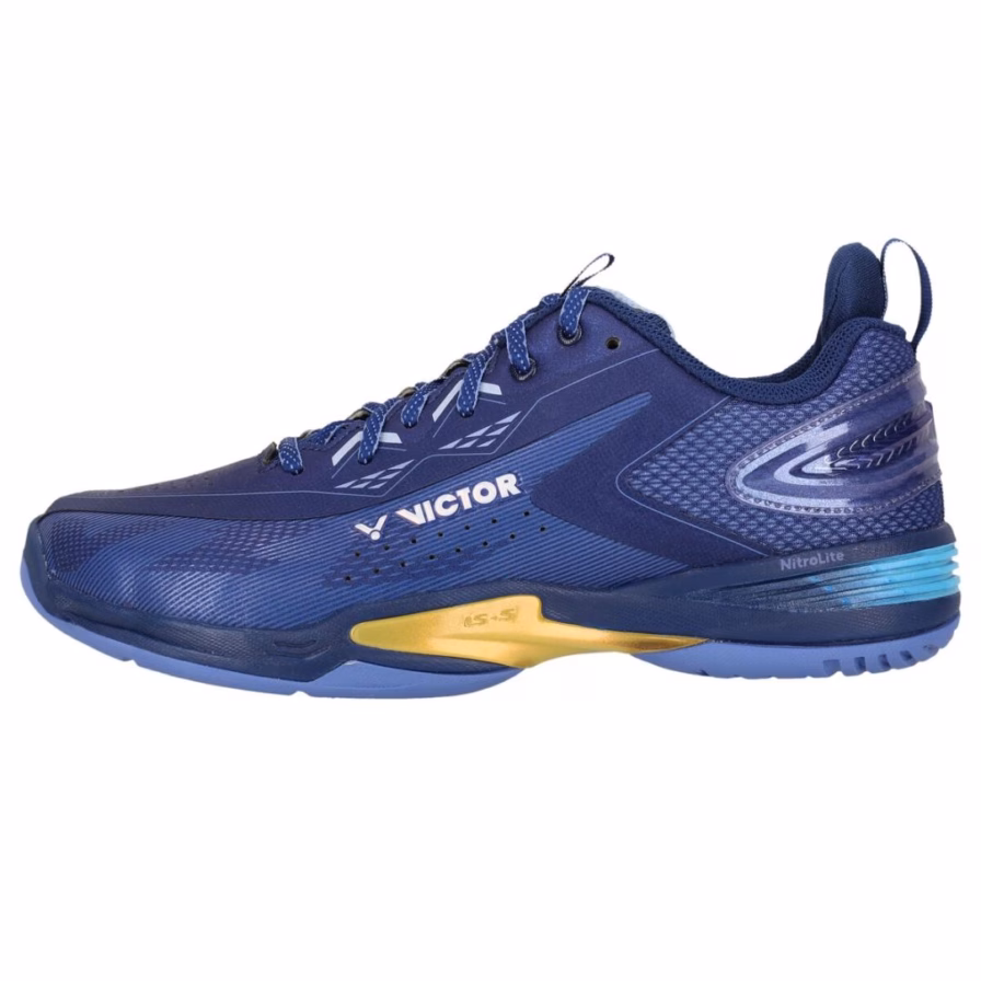 De Victor A970cADV Navy is een technisch geavanceerde badmintonschoen voor spelers die hoge eisen stellen aan prestaties en comfort. Dankzij slimme constructies en hoogwaardige materialen beweeg je snel, stabiel en met maximale ondersteuning over de baan.